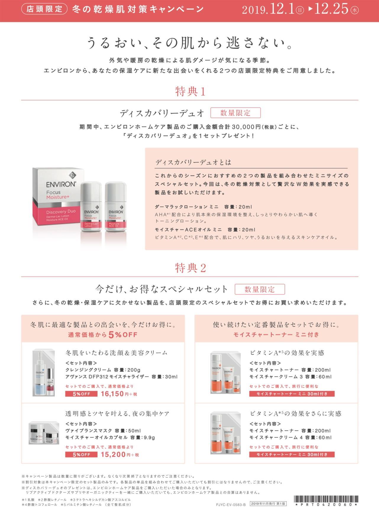 期間中、エンビロンホームケア製品のご購入金額合計30,000円(税抜)ごとに、「ディスカバリーデュオ」を1セットプレゼント!